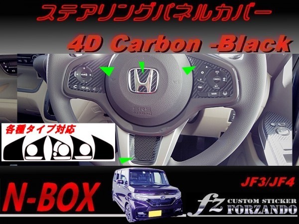 - N-BOX ステアリングパネルカバー 4Dカーボン調 ブラック 車種別カット済みステッカー専門店 fz JF3 JF4 custom