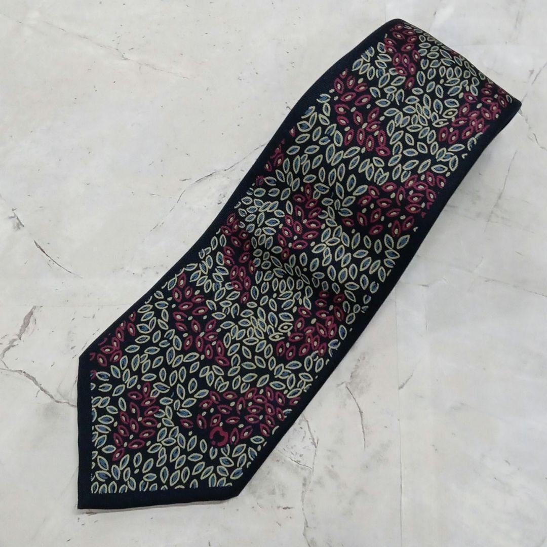 - ミラショーン ネクタイ 紺 ペイズリー ボタニカル 総柄 シルク【n523】
