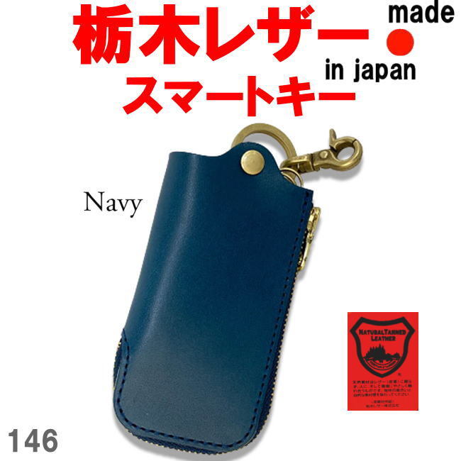 - ネイビー 栃木レザー 146 Lジップ スマート キーケース 日本製 本革 メンズ レディース
