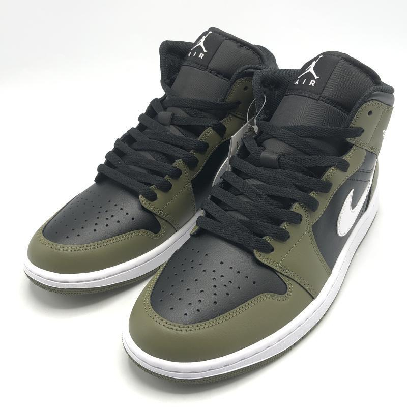 > 【中古】NIKE Air Jordan 1 Mid Black/Medium Olive/Sail/White スニーカー 28cm DQ8426-092 黒 カーキ 白 ナイキ[240010462668]