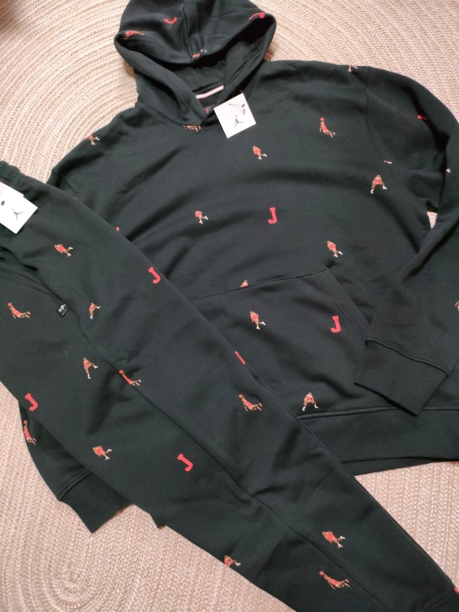 > 新品 未使用 NIKE JORDAN 総柄 スウェット セットアップ 2XL ブラック 黒 ナイキ ジョーダン 上下 パーカー パンツ メンズ