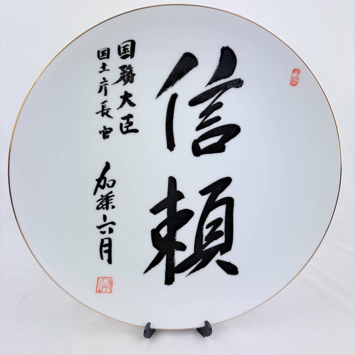 - 【送料込み】加藤六月 直筆書「信頼」飾り皿 国務大臣 国土庁長官 ##674600