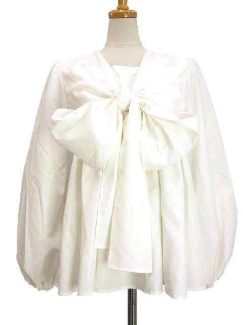 > スリースクエア THREE SQUARE ビッグリボン ブラウス storyコラボ F オフホワイト 白 トップス レディース