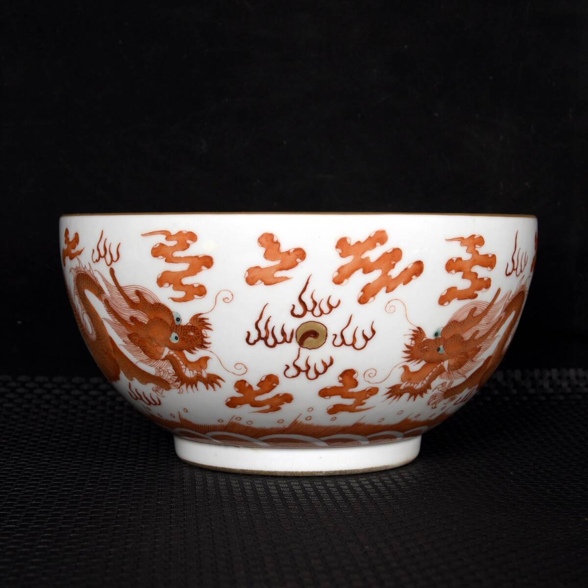 - 『館蔵珍品 清 乾隆年製款 古陶瓷品 紅釉 描金 二龍戲珠紋 供碗』置物 賞物 貴重物品 収蔵品 中国古美術