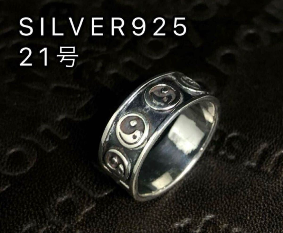 - 陰陽 平打ち柄あり 風水 強運 勾玉 シルバー925 21号指輪 ギフトだ2Y YYQ25-2wsだ
