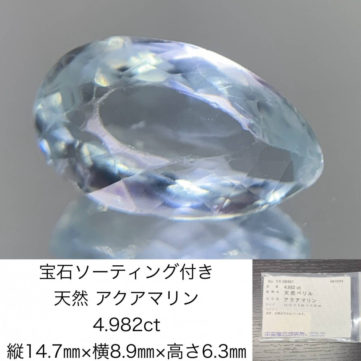 > 宝石ソーティング付き 天然 アクアマリン 4.982ct 縦14.72×横8.94×高さ6.38 ルース( 裸石 ) 1058Y