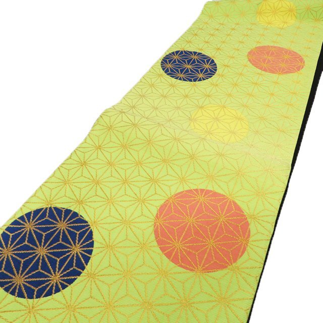 - 袋帯 振袖用 中古 リサイクル 正絹 フォーマル 仕立て上がり 六通 麻の葉模様 箔糸 黄浅緑色 多色 金 きもの北條 A1157-13