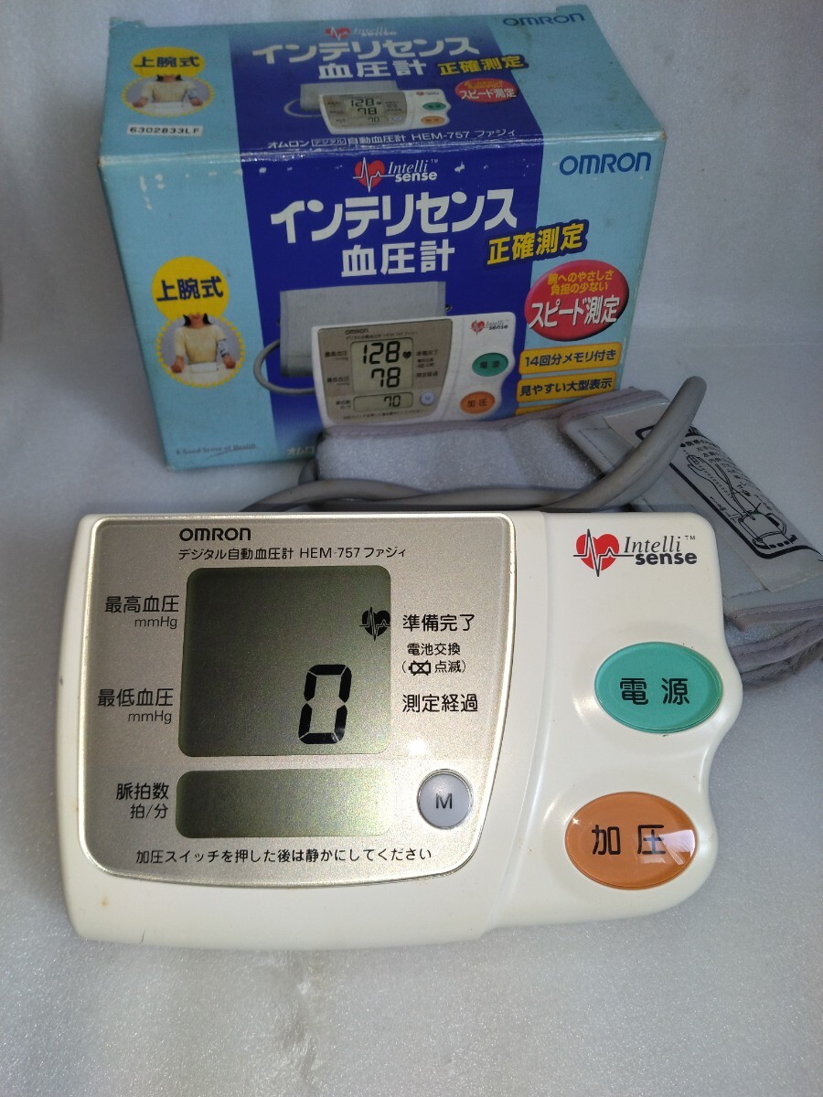 - K918【中古良品】OMRON オムロン デジタル自動血圧計 上腕式HEM-757 ファジイ インテリセンス 血圧計