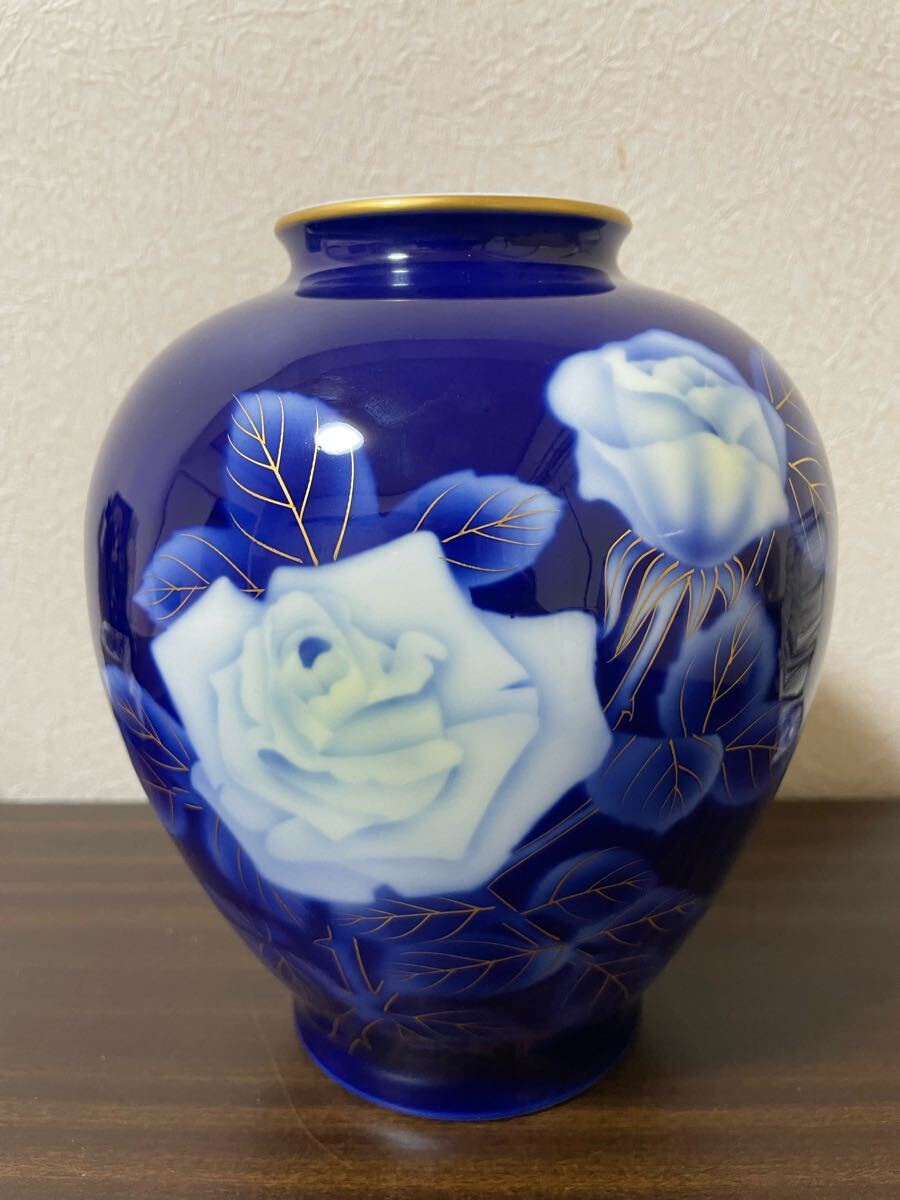 - 深川製磁 紺色花柄の花瓶 花器 フラワーベース 花入 壺 花生