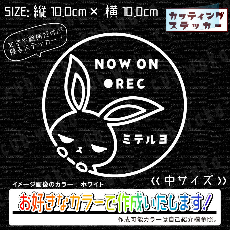 - ドラレコ録画中②うさぎステッカー 文字絵柄だけ残るカッティングステッカー・カブ・車・バイク・二輪・トラック・リアガラス