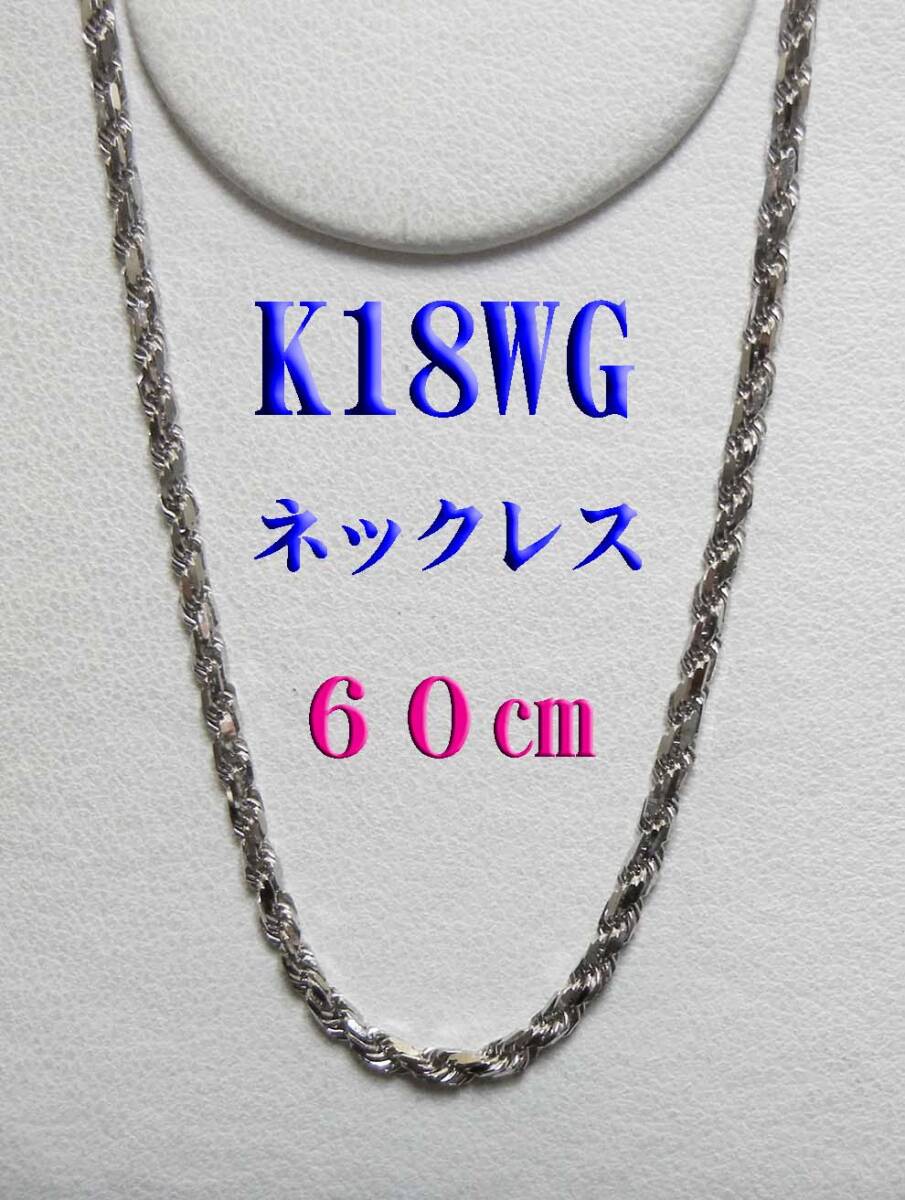 - 限定価格!新品 K18WG 18金 イタリア製 カットロープネックレス 60㎝ 750 ITALY刻印有り