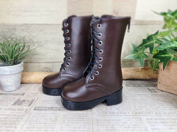 - ●編み上げミドルブーツ*ダークブラウン*MDD/MSD/オビツ50共通サイズ(ドールシューズ内寸:縦 約6.5cm、横 約3.0cm)●