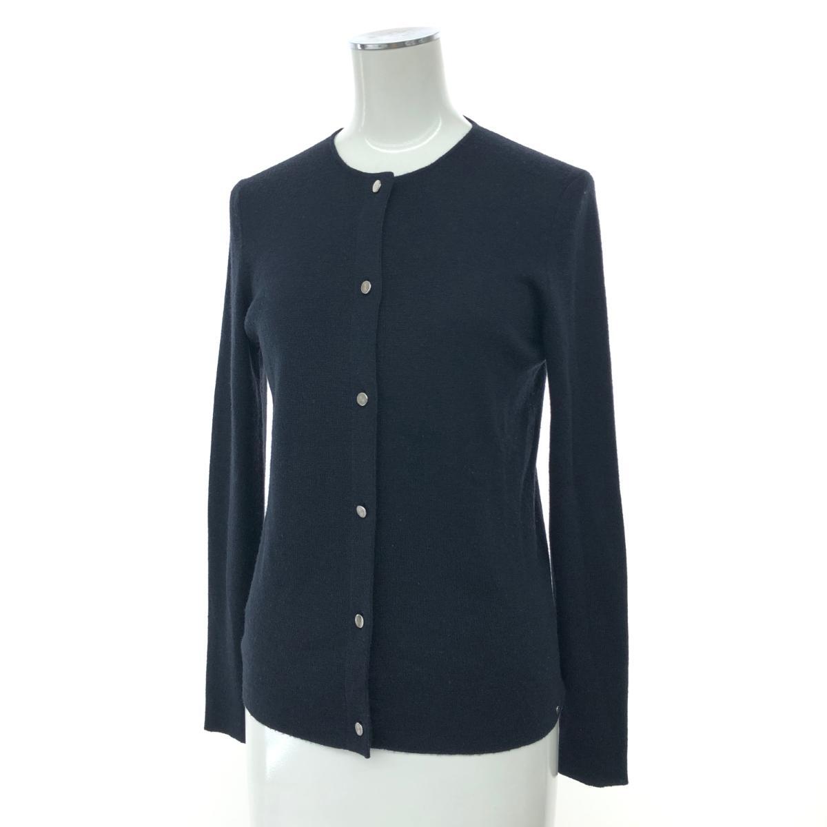 > ◆HERMES エルメス 長袖カーディガン 小さいサイズ:34◆ ダークネイビー 濃紺 カシミヤ×シルク レディース クルーネック トップス