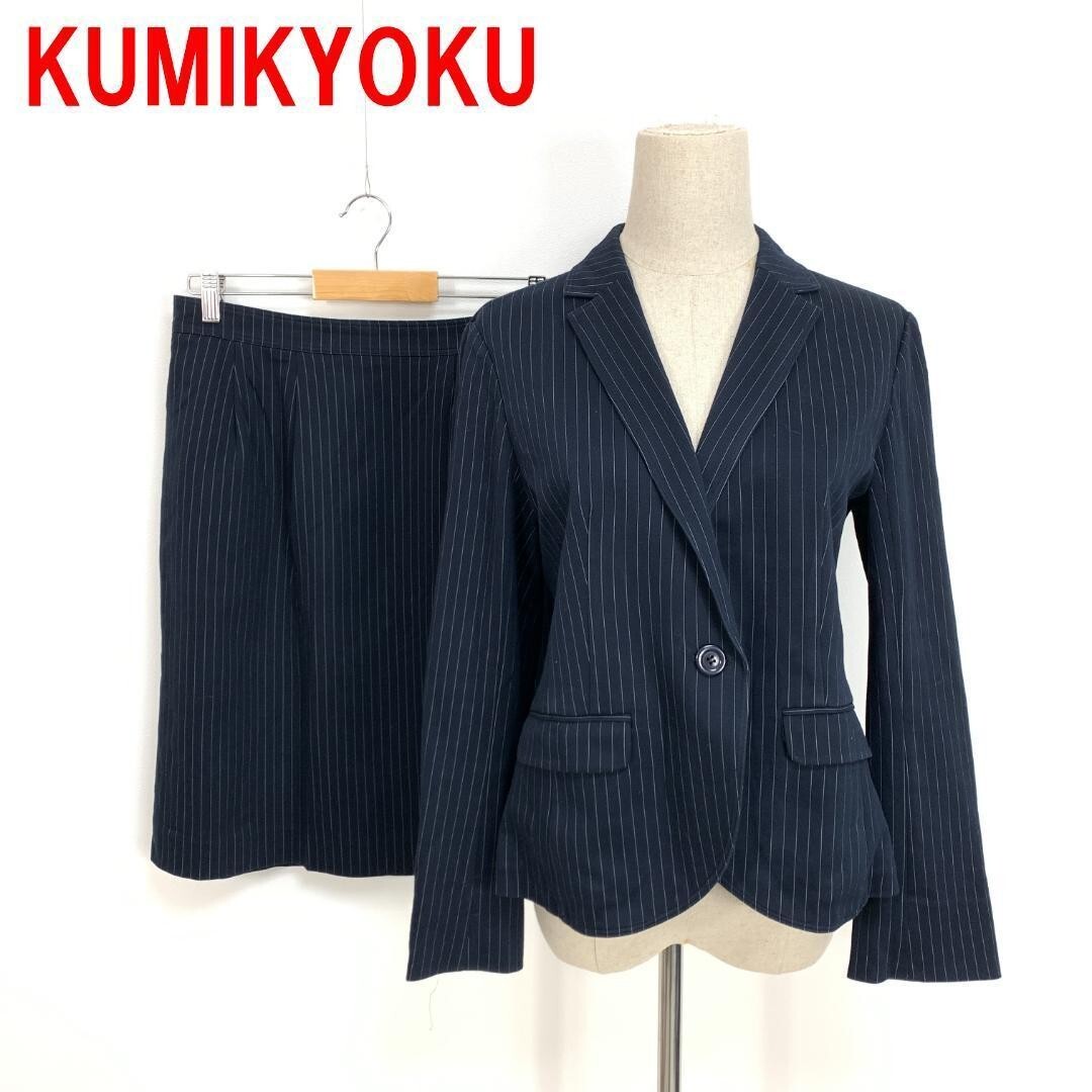 - A5212 組曲 スカートスーツセット 綿 ストライプ KUMIKYOKU クミキョク テーラードジャケット 紺 Lサイズ相当