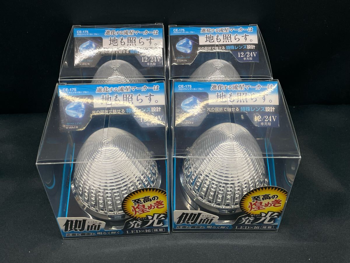 > 廃番 CE-175 4個 ブルー 青 クロスラインマーカー 12V24V共用 ヤック レトロ デコトラ アート LEDマーカーランプ 樹脂レンズ