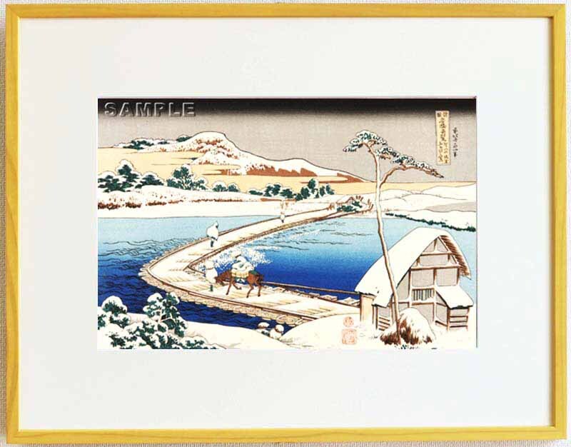 - 真作保証 東京都伝統工芸品 額装 葛飾北斎 木版画 諸国名橋奇覧 かうつけ佐野 ふなはしの古づ 群馬 初版1833年頃 やはり北斎の作品は凄い!