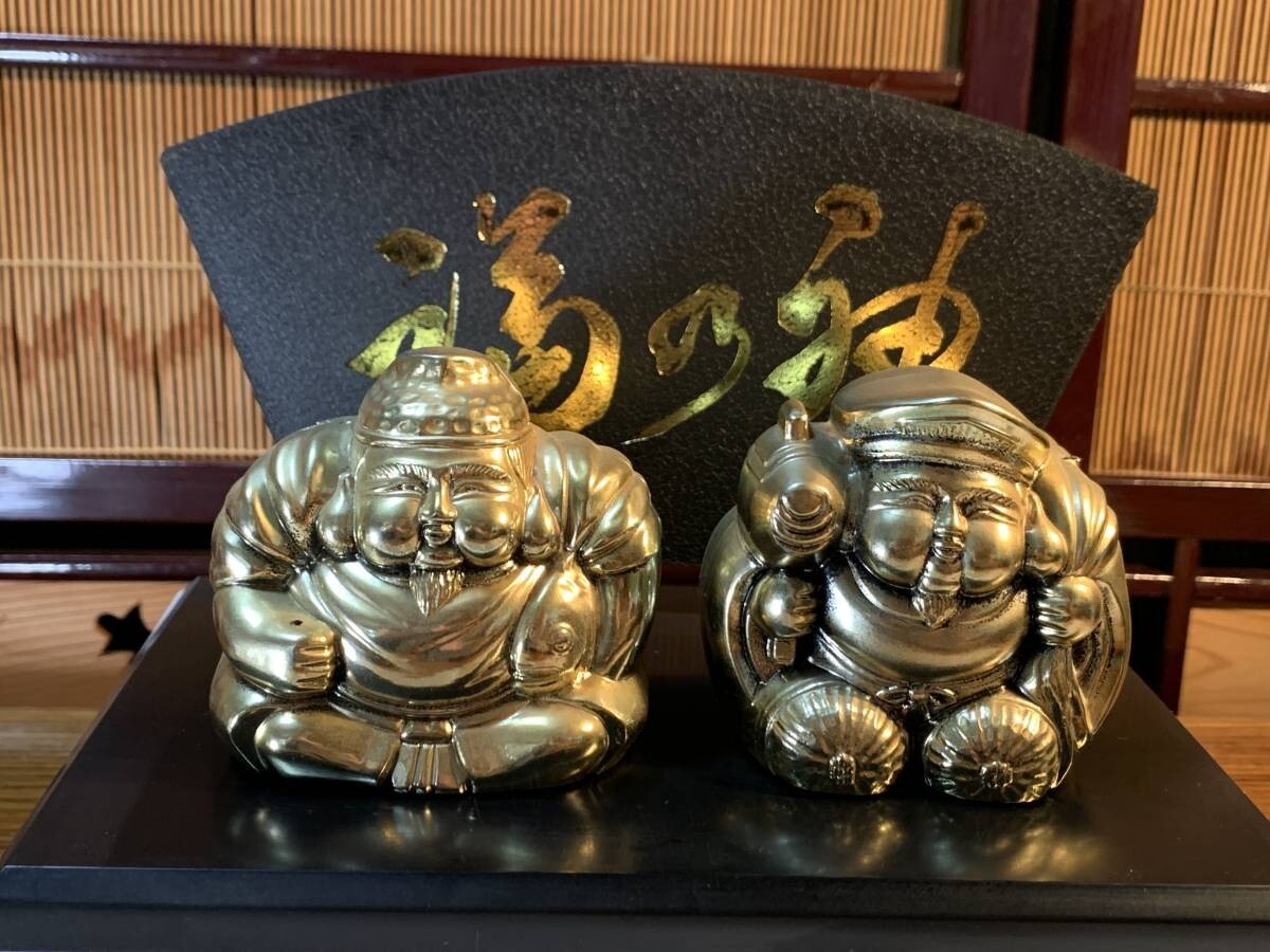 - 福の神 2体 打ち出の小槌 福神 黄色#39yo402