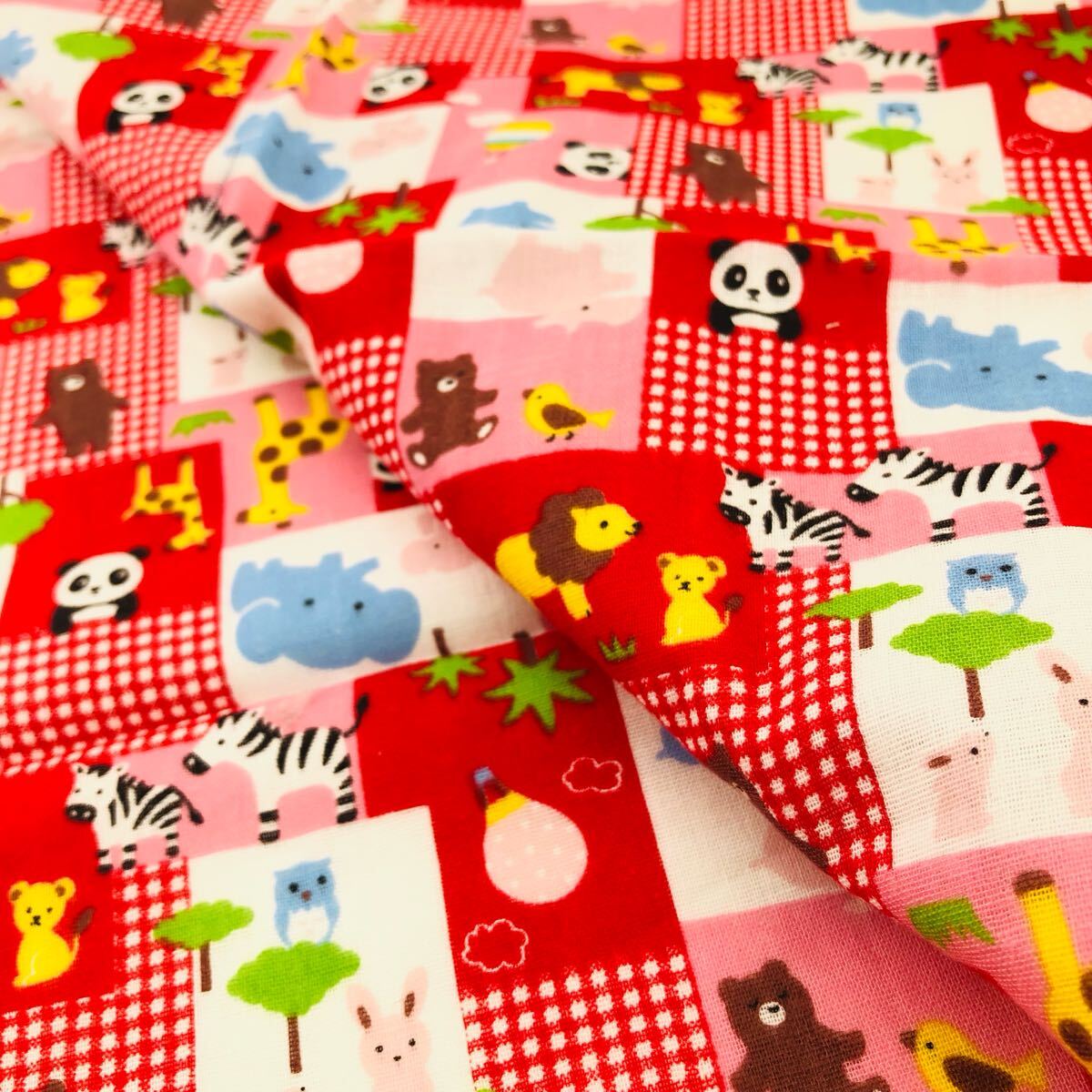 - 55×50 はぎれ 日本製 ダブルガーゼ アニマル柄 入園入学 ふわふわダブルガーゼ ガーゼハンカチに コットン
