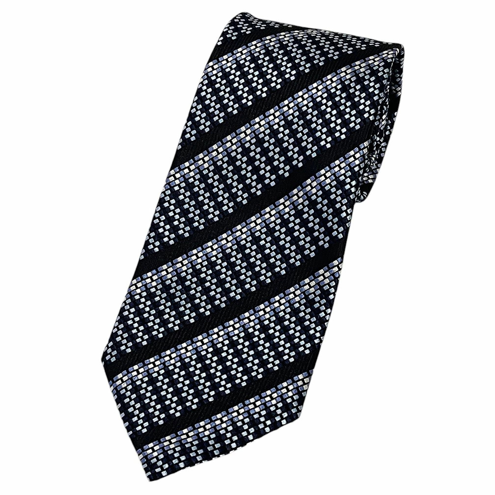 - ゼニア ブランド ネクタイ エルメネジルド・ゼニア シルク 100% ストライプ ネイビー ブラック 紺色 黒 50124