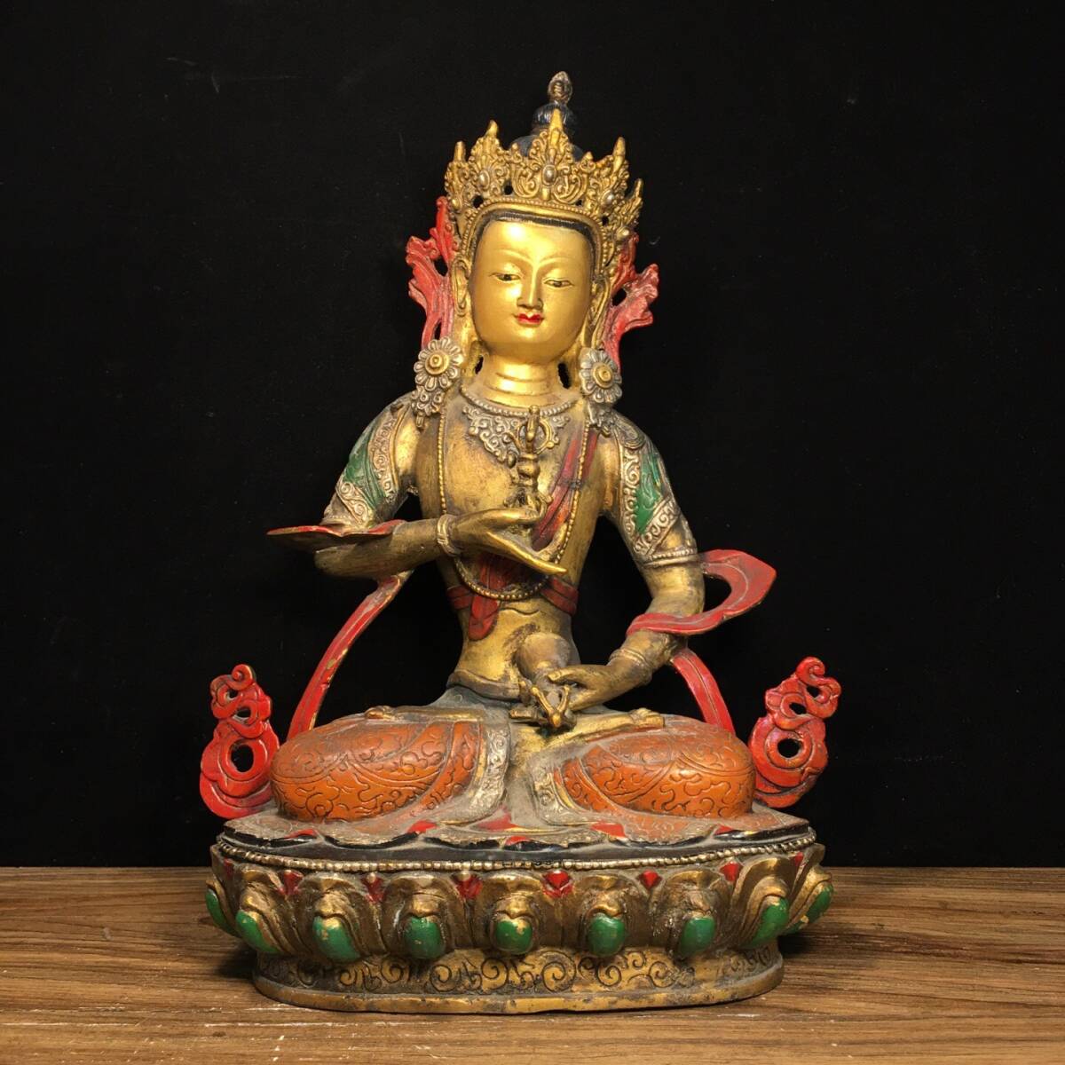 - 『館蔵珍品 銅製 金鍍 彩繪 金剛薩錘像』置物 賞物 貴重物品 収蔵品 中国古美術