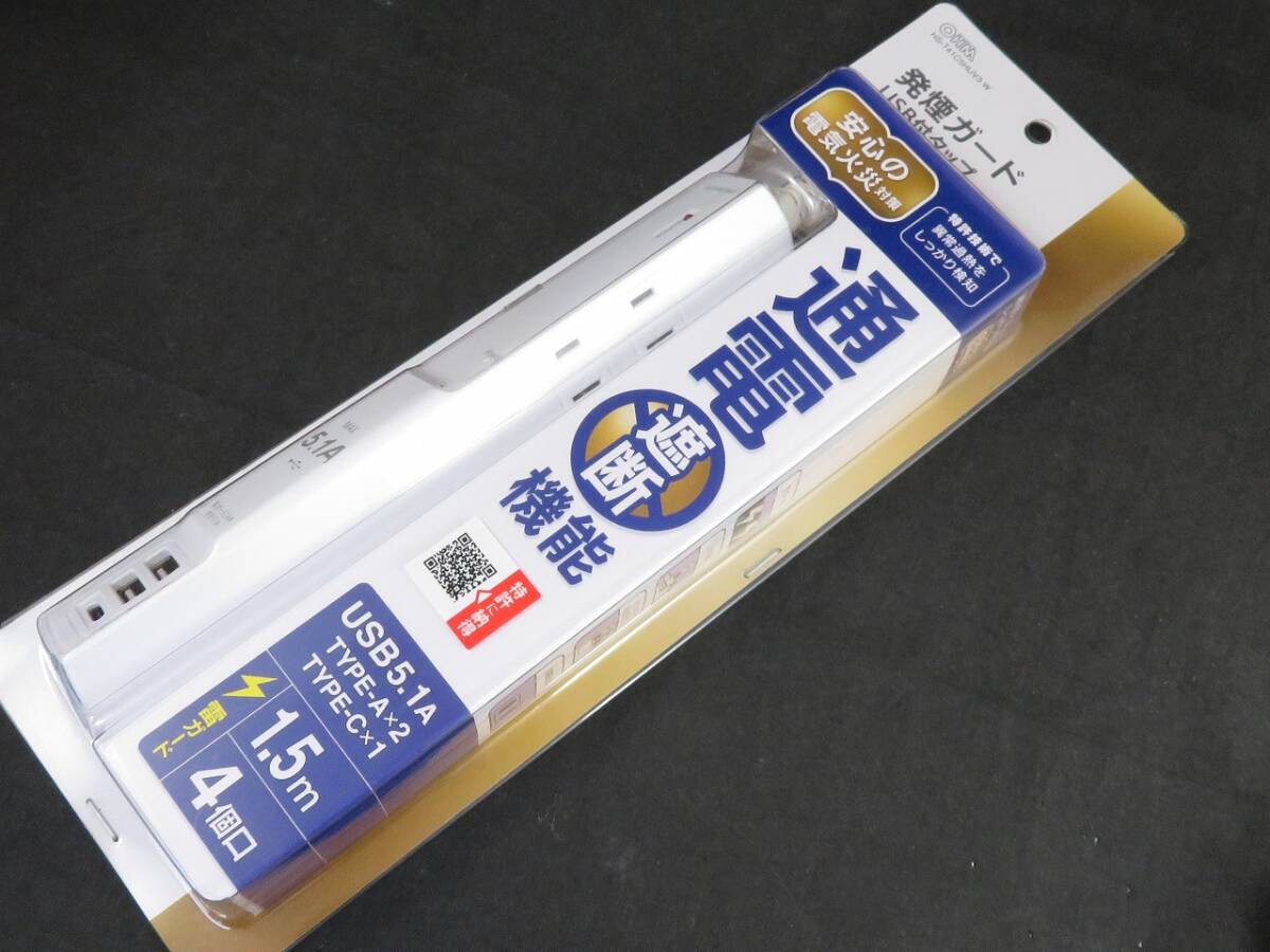 - 未使用品 オーム電機 発煙ガードタップ 4個口 USB3ポート付き 雷ガード 1.5m HS-T41C5HUV3-W *0307