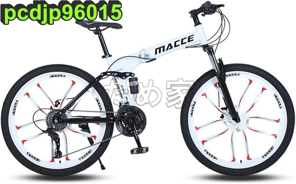 - 26インチ 21段変速 自転車 折りたたみ 自転車 スポーツ 本体 オフロード サスペンション 太いタイヤ 軽量 ウンテンバイク