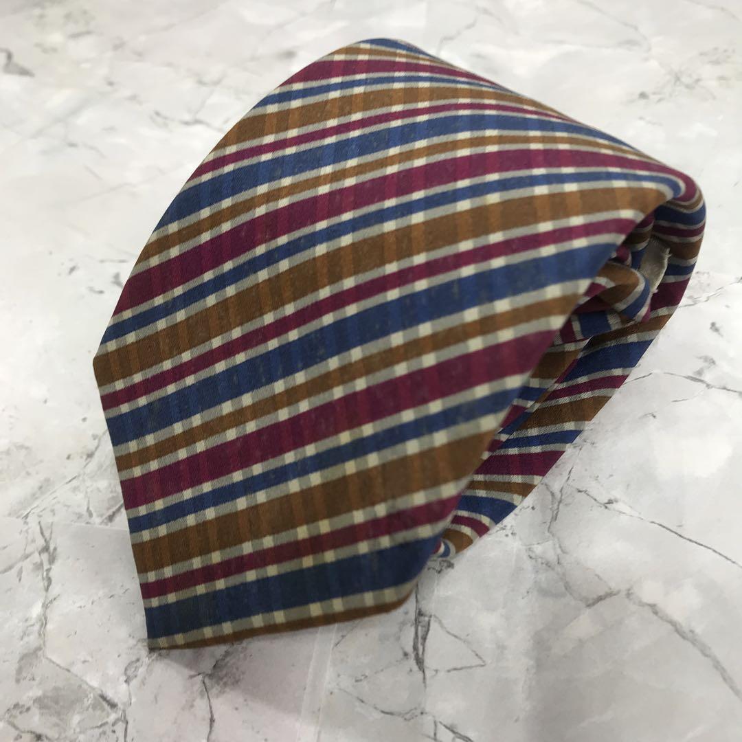 - クリスチャンディオール ネクタイ パープル等 ストライプ 絹【n665】
