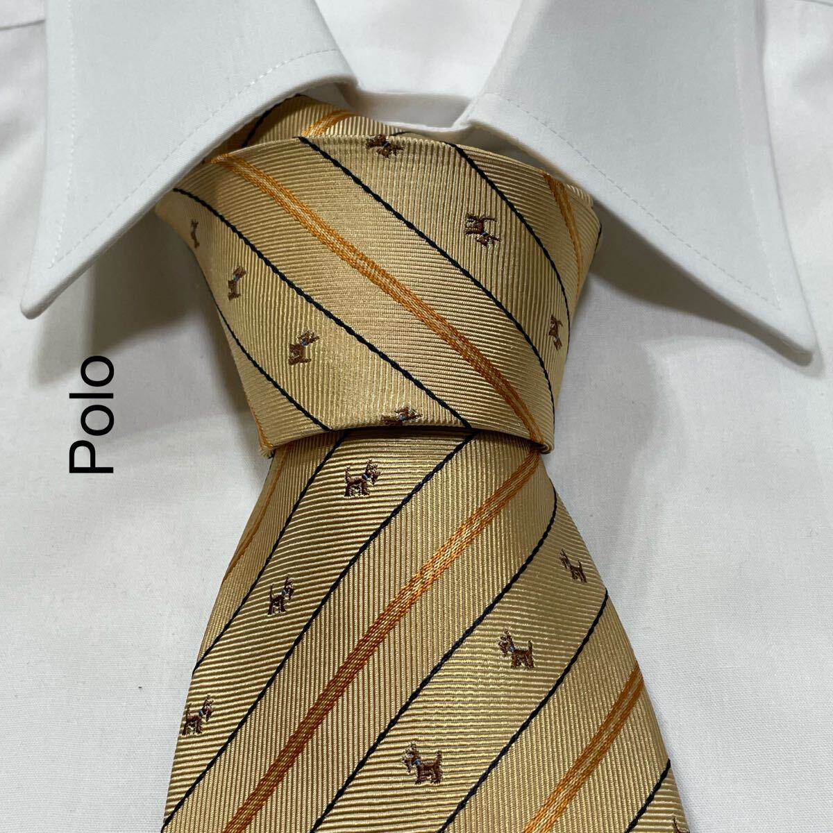 - Polo ポロ 犬 アニマル ストライプ ジャガード シルク ネクタイ 日本製 ベージュ TG1166
