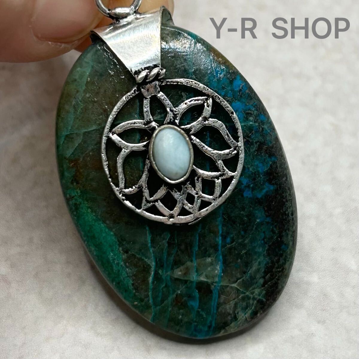 > 天然石★クリソコラとラリマーのアンティーク調ペンダントトップ★レディースメンズネックレスシルバー 925刻印エスニックアジアン雑貨新品