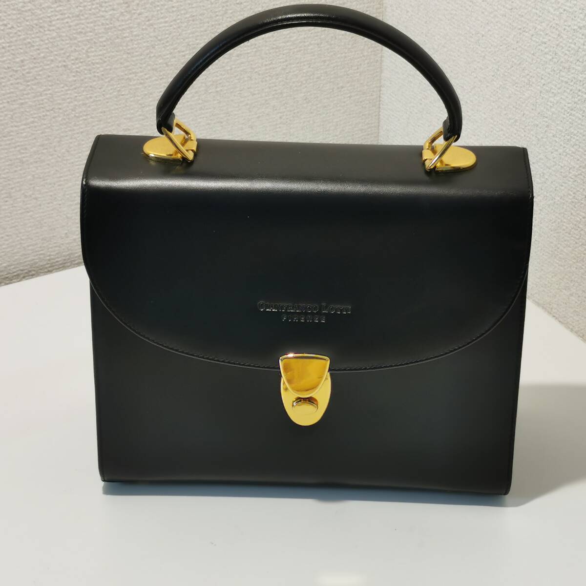 > 151124S75-0312T3□ジャンフランコロッティ GIANERANCO LOTTI□ハンドバッグ ブラック イタリア製 レザー 黒革 ゴールド金具 美品