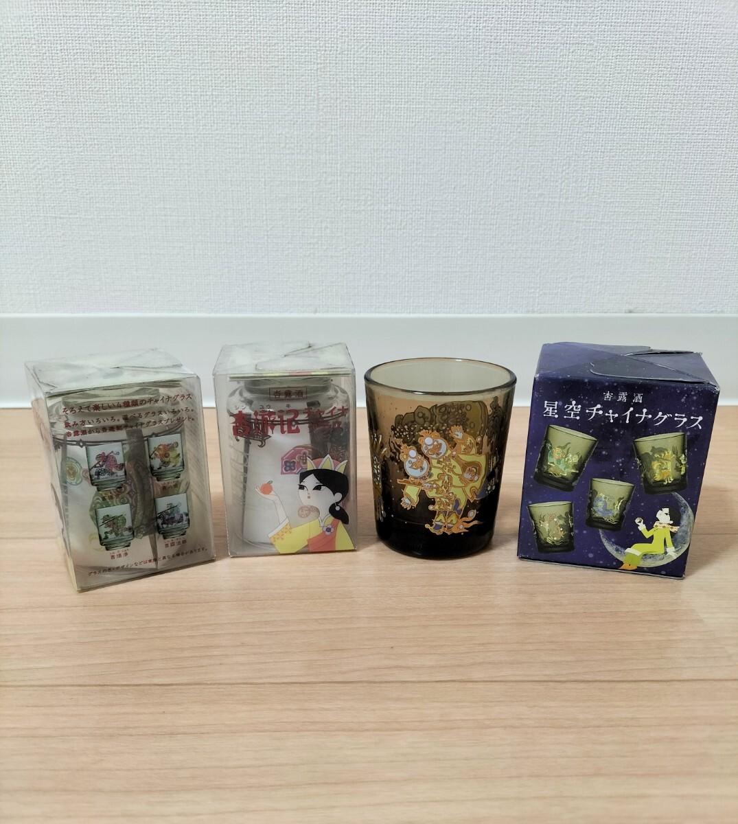 - 杏露酒 星空チャイナグラス&杏遊記チャイナグラス(未開封)お酒のミニカップ4つ ノベルティ