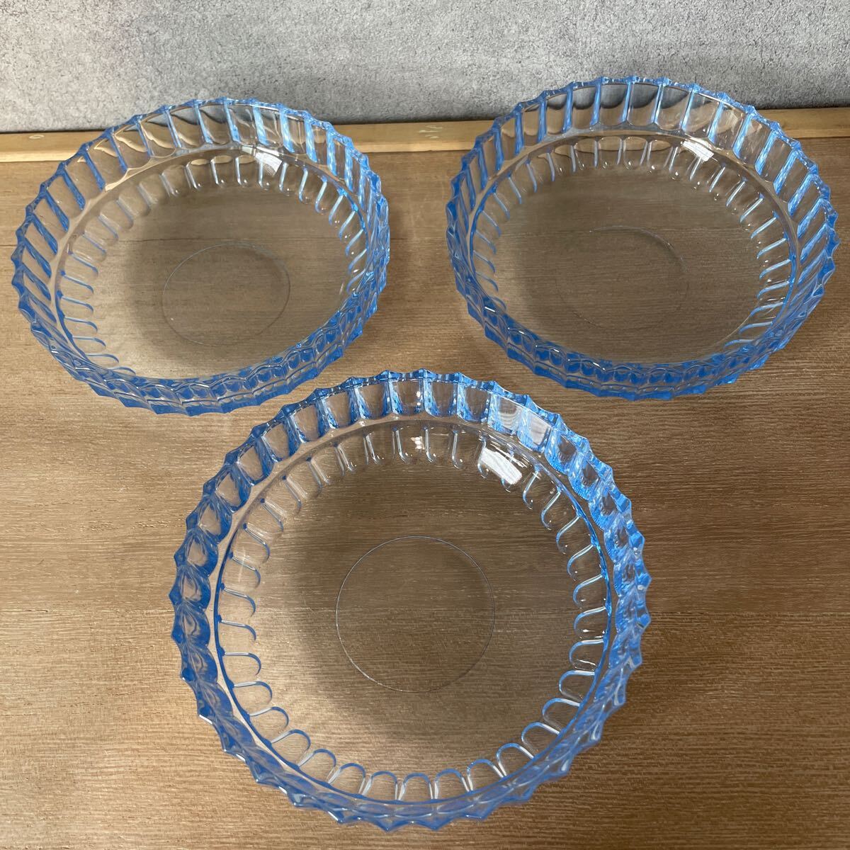 - 小皿3枚セット プレスガラス スタッキング 菓子入れ 小鉢 昭和レトロ アンティーク ビンテージ ブロカント おしゃれ