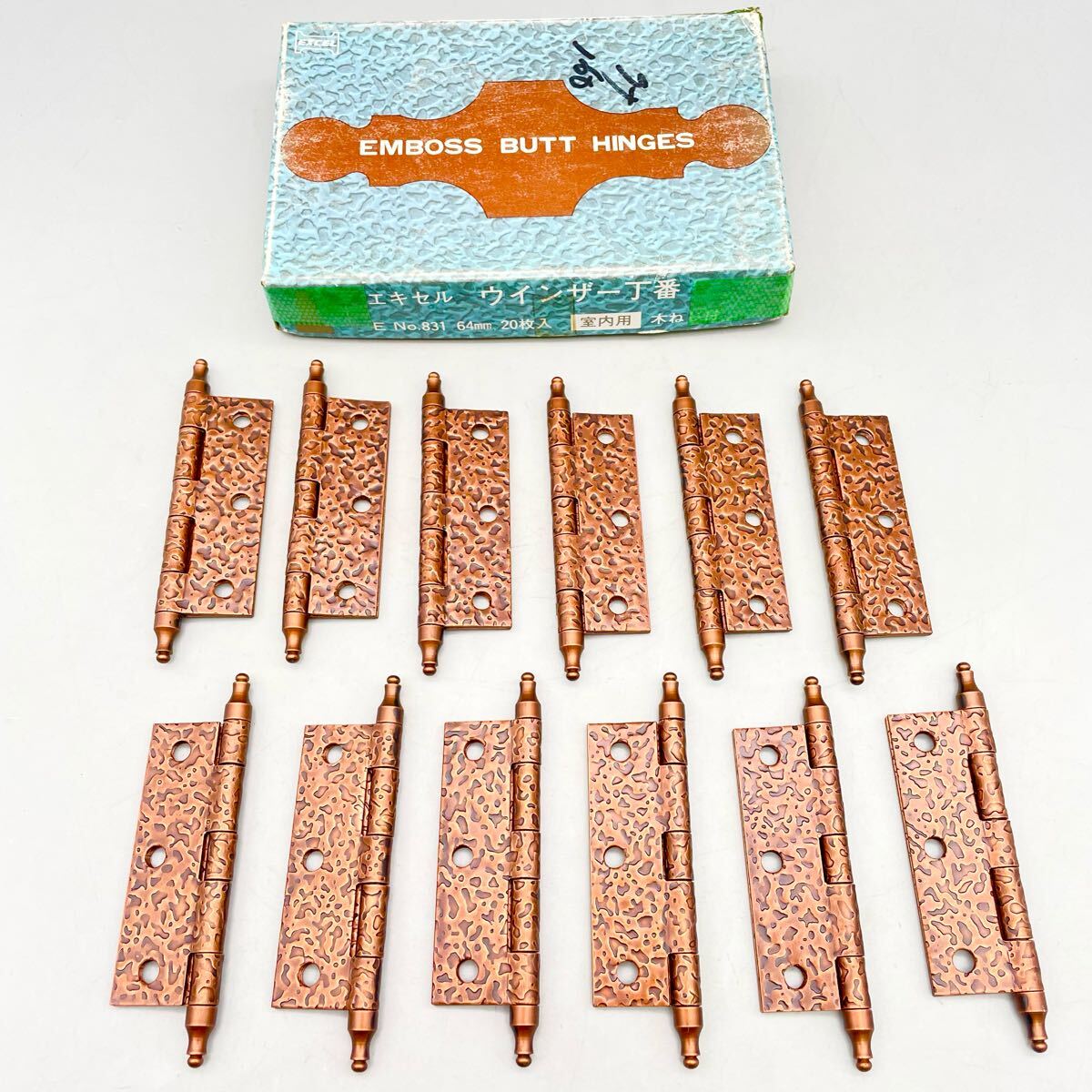 - 【送料全国一律360円】アンティーク 建具 エキセル エンボス No.831 ウインザー丁番 64mm 12枚 ブロンズ ドア レトロ 金物屋 在庫 未使用