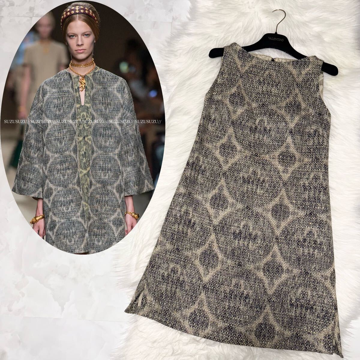 > 本物 ヴァレンティノ シルク混 ツイード デザイン ノースリーブ ワンピース ドレス 38 ベージュ系×ブラック系 VALENTINO レターパック可