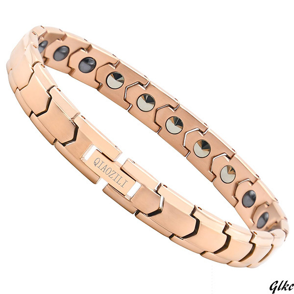 - 【職人による丁寧な研磨で、美しい鏡面仕上げを実現】ゲルマニウムブレスレット チタン鋼素材 静電気除去機能付き ローズゴールド