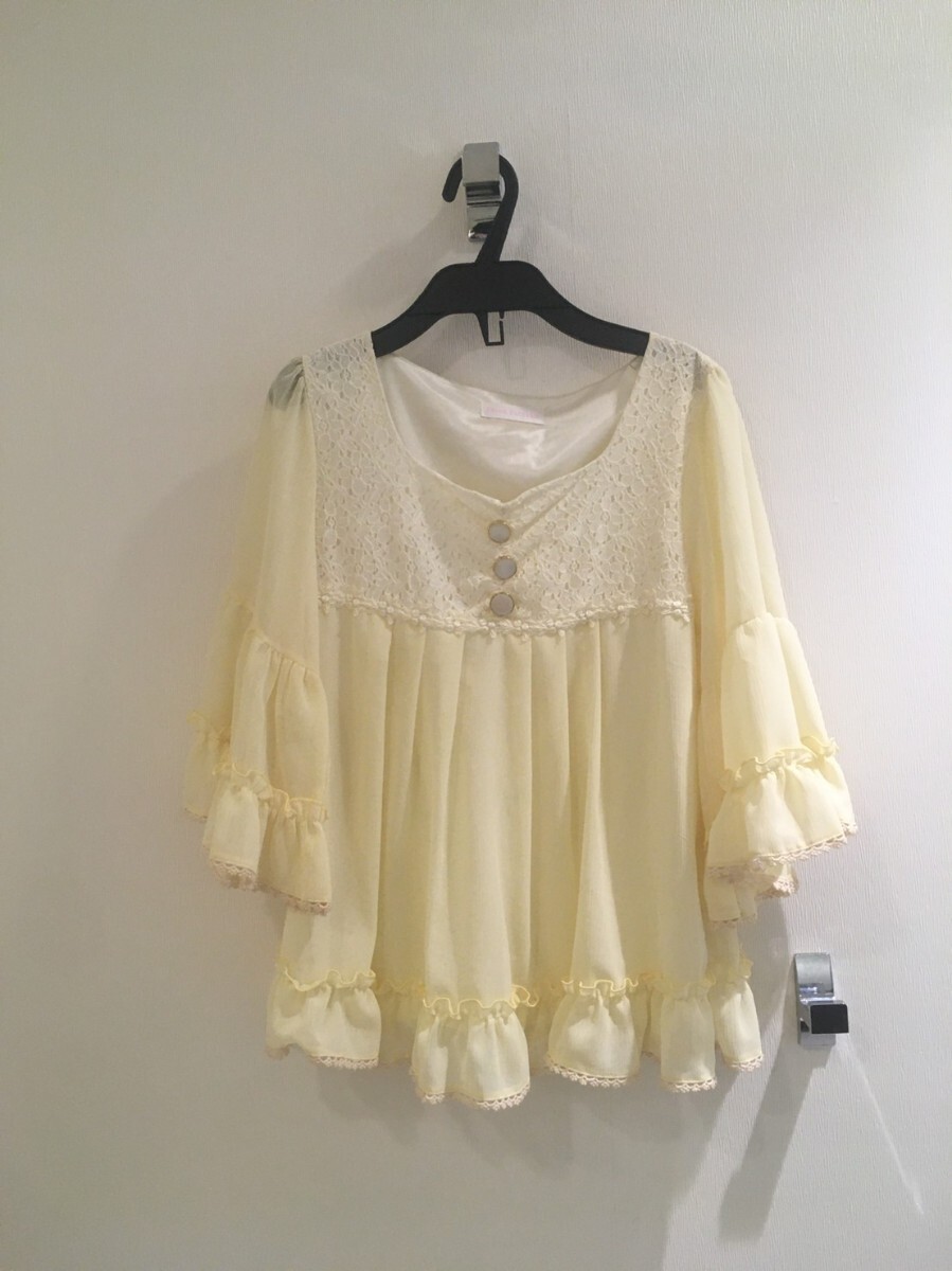 - 新品 七分袖シフォン ブラウス カットソー淡い黄色