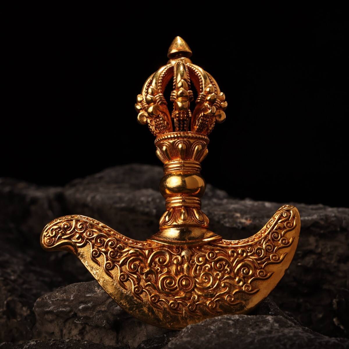 - 【超珍館蔵】銅製 塗金 金剛多杰降魔斧法器 置物 古賞物 古美術品 稀少珍蔵品