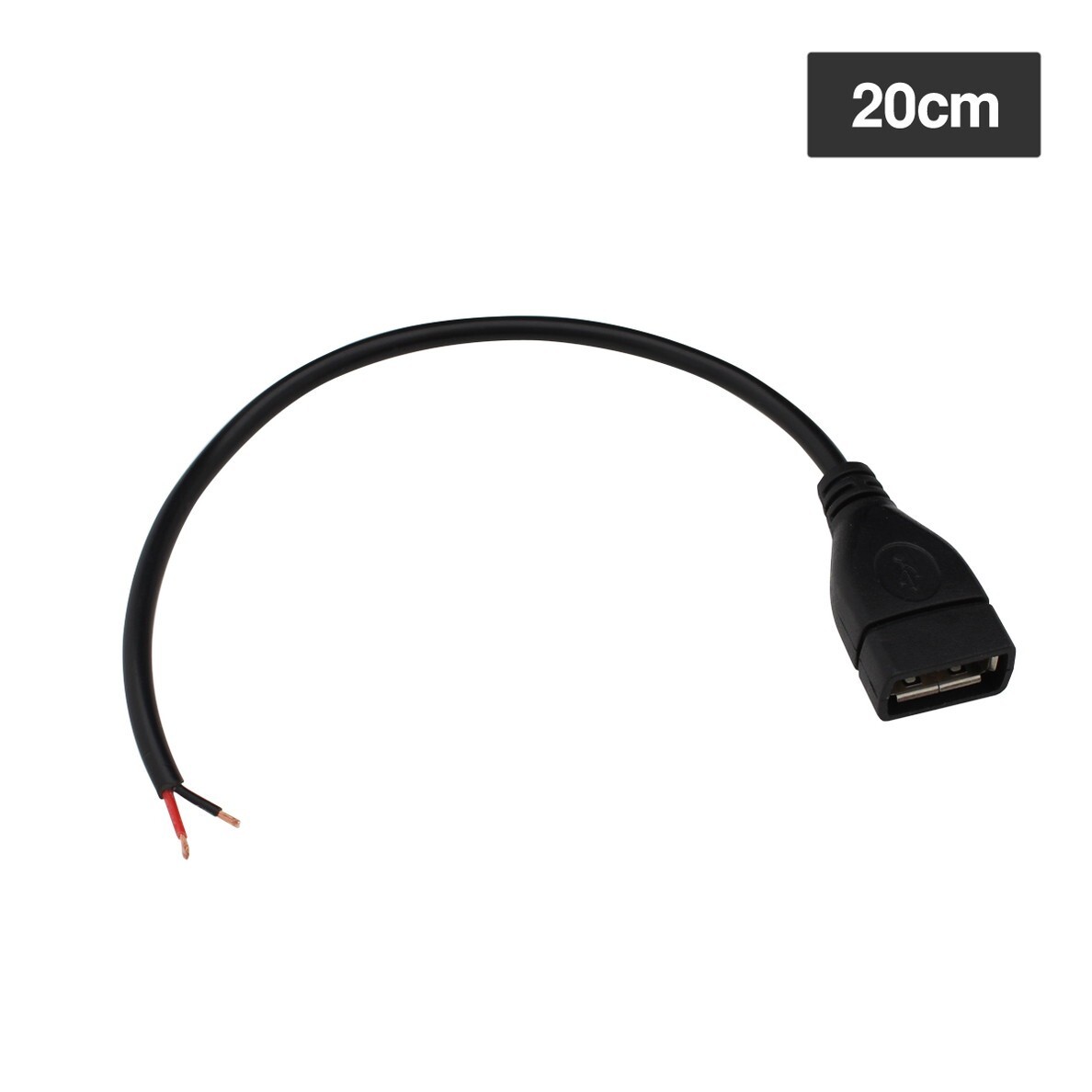 - USB Type-A 切りっぱなし 電源ケーブル 加工用 2線 電子工作 メス 20cm