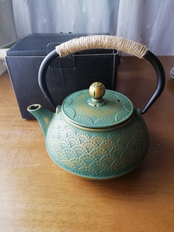 - 新品未使用 鋳鉄 エメラルドグリーン 茶こし付き 急須 900ml 鉄瓶 やかん ティーポット 送料込み