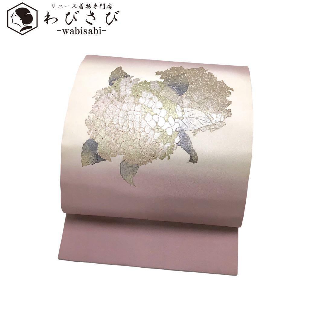- 名古屋帯 塩瀬 紫陽花 アジサイ 暈し 金銀彩 曙色 O-4839 着物 きもの kimono 和服 和装 中古 リサイクル着物 【送料無料】