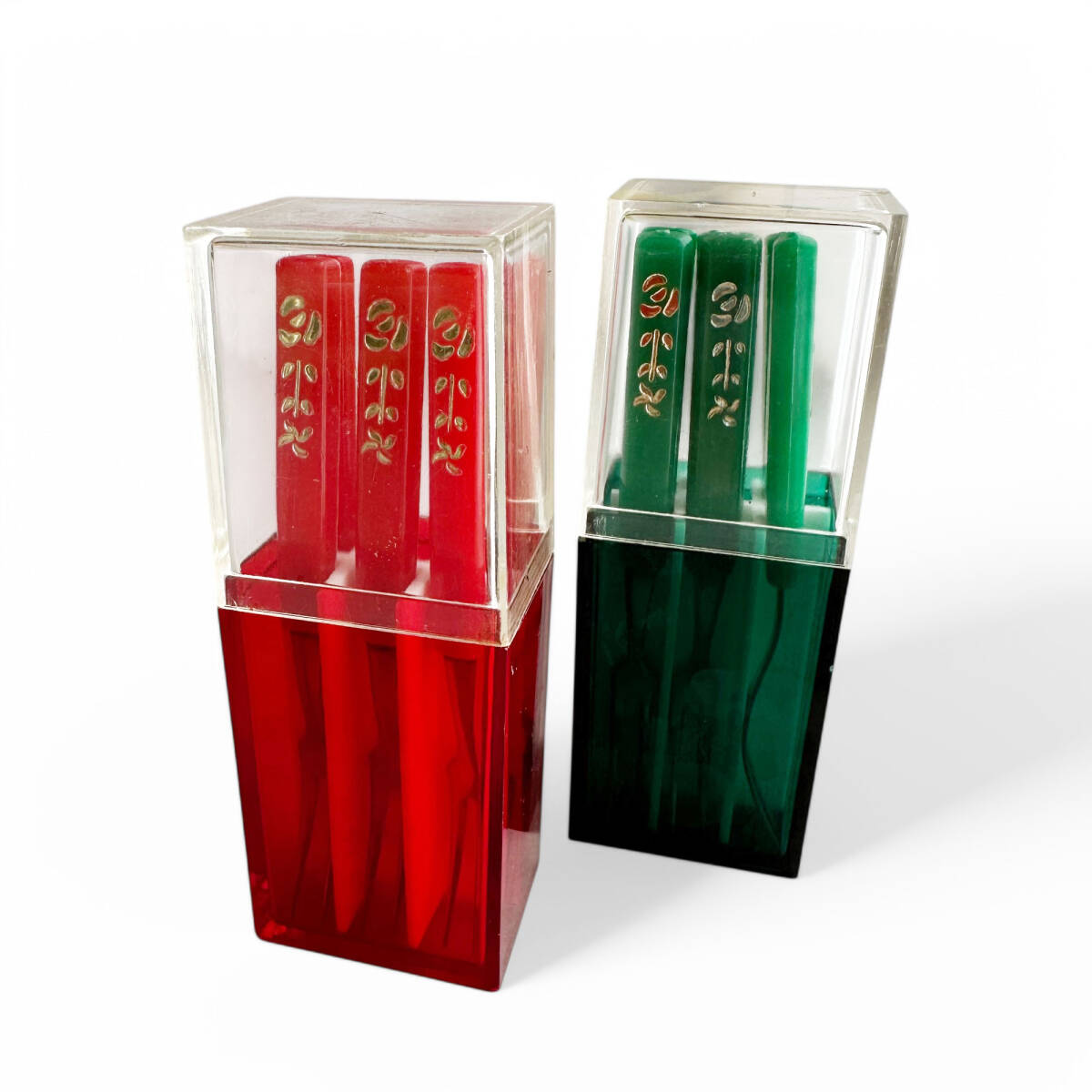 - K7-518 当時物 レトロ フォークセット ケース入 2個セット フルーツフォーク 赤/緑 カトラリー 昭和レトロ