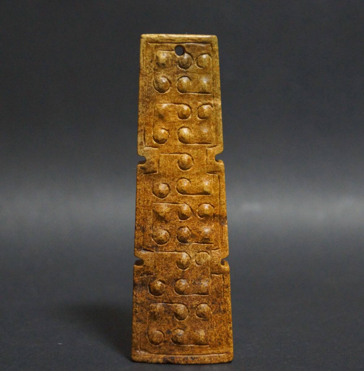 - 【閑】古代玉 細工彫り『回龍文』珮 古玉根付 帯飾り 提げ物 装飾品☆戦漢彫☆☆美しい石目☆時代物☆7D0318