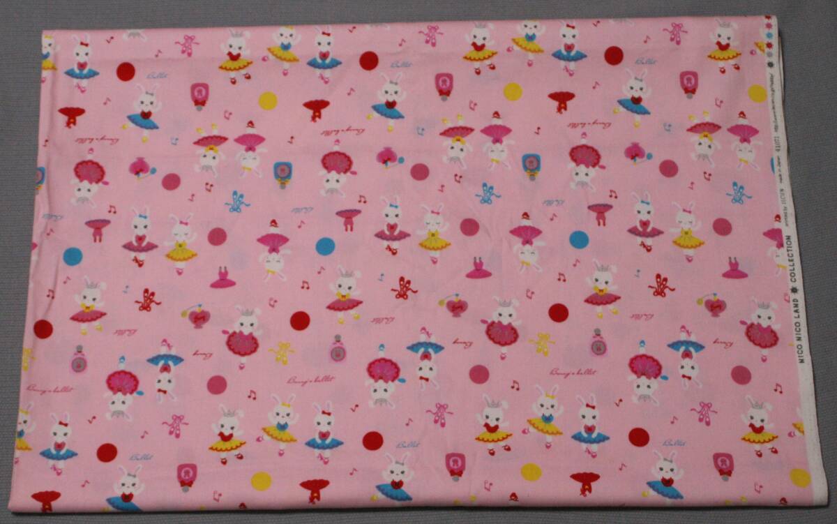 - ★生地 巾110cm×長さ140cm位 ルシアン ニコニコランドコレクション うさぎバレリーナ ピンク系 ハギレ 現状品 手芸★