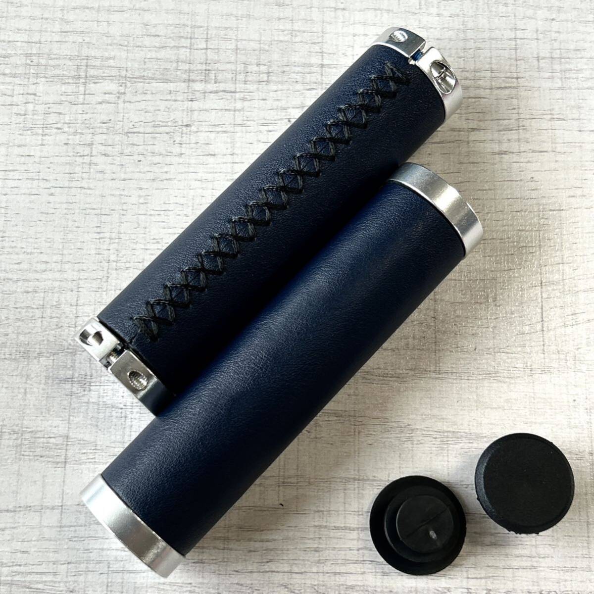 - 自転車グリップ ハンドルグリップ 筒形 レザー調 ネイビー