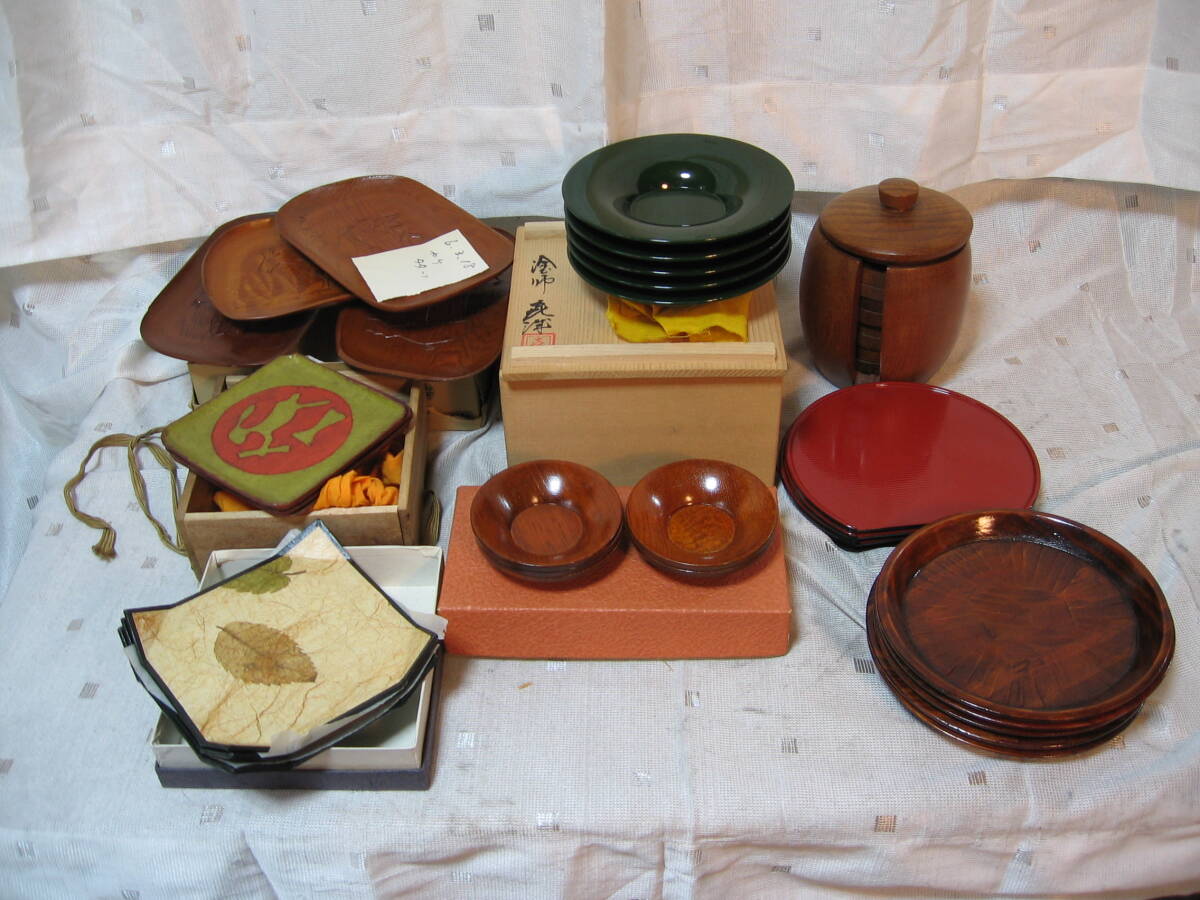- 茶托5客(塗師) 喜洋 造☆コースター8個 収納ケース付き☆木製茶托5客☆木製 木皿5枚☆和紙 銘々皿 3客他