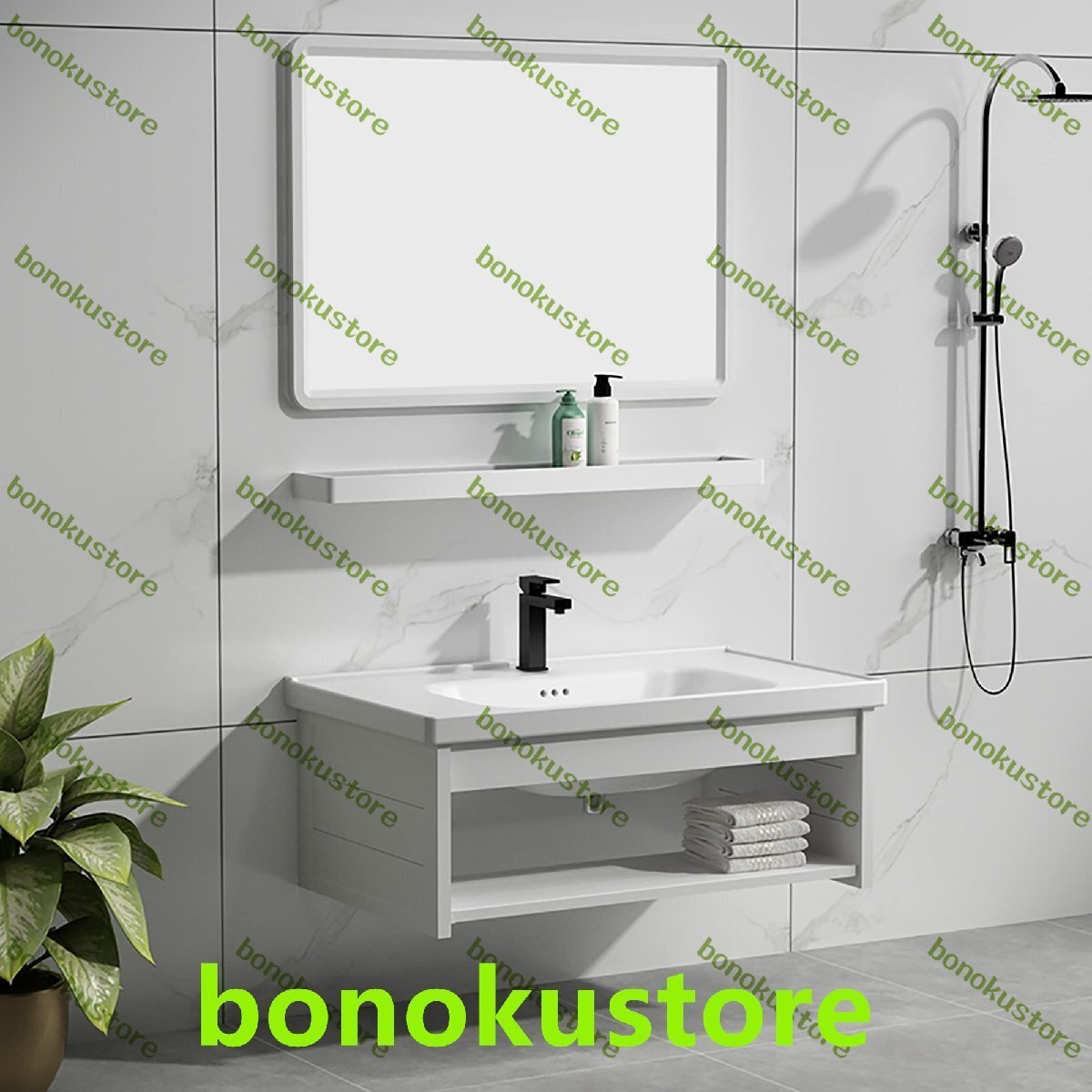 - 洗面台 洗面ボール 陶器製 洗面シンク 洗面化粧台 キャビネット シンク コンボ 小さなスペース用 バスルーム 60x40x35cm