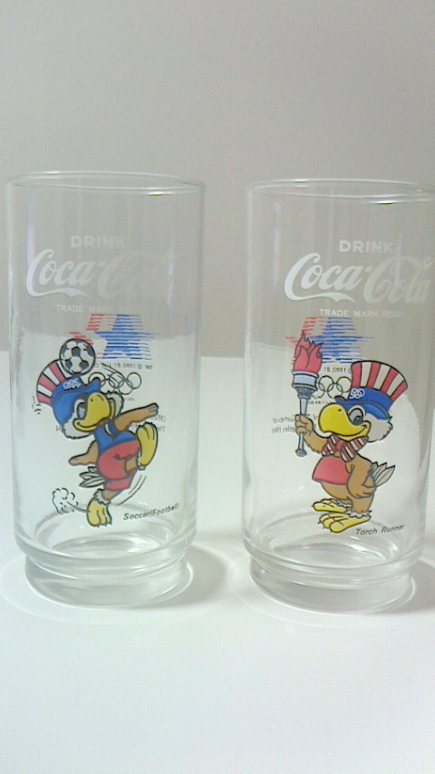 - ロサンゼルス オリンピック コカ・コーラ グラス 2個セット 即決 イーグルサム 昭和レトロ 非売品