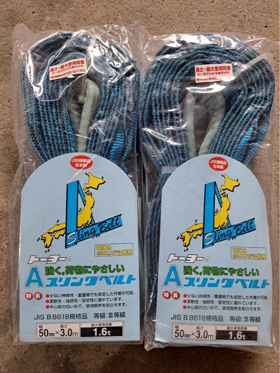 - 2 新品 未使用 トーヨー ナイロンスリング 2本セット 50mm幅 3.0m 1.6t 玉掛け スリング ベルト 帯 オビ