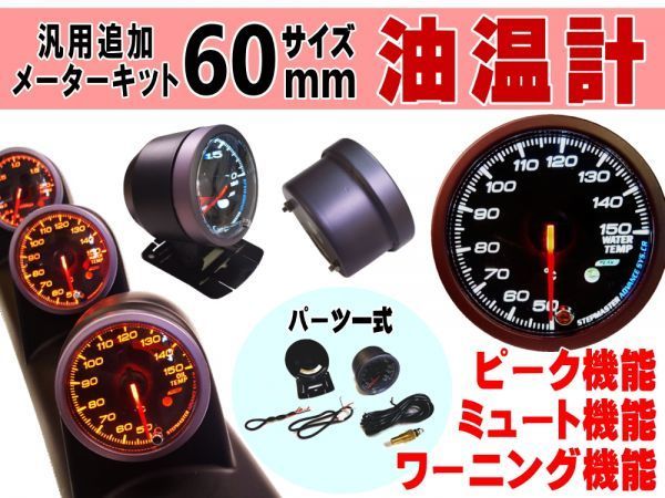 - 油温計 60mm ワーニング ピーク機能 クリアレンズ メーターフード LEDアンバー ホワイト切替 追加メーター汎用 Φ60 オイル 温度計 4
