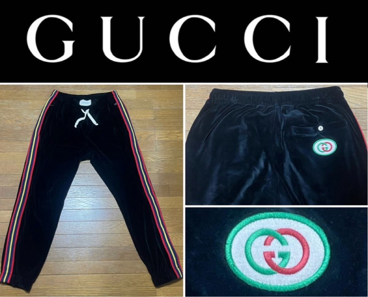 > 極上♪GUCCI国内正規グッチ20SSシェニールベロアイージーロングパンツブラックメンズ L相当ITJQ7AZ6609W 定価14万円♪